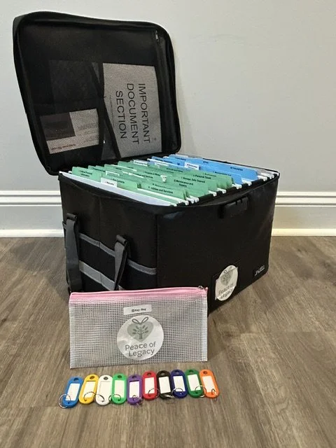 Through the PEACE Pack and our compassionate, step‑by‑step support, we help individuals and families organize the essentials—documents, decisions, digital access, personal wishes, and the details that matter most. Everything becomes clear, accessible, and thoughtfully gathered so nothing is left hidden, scattered, or overwhelming.